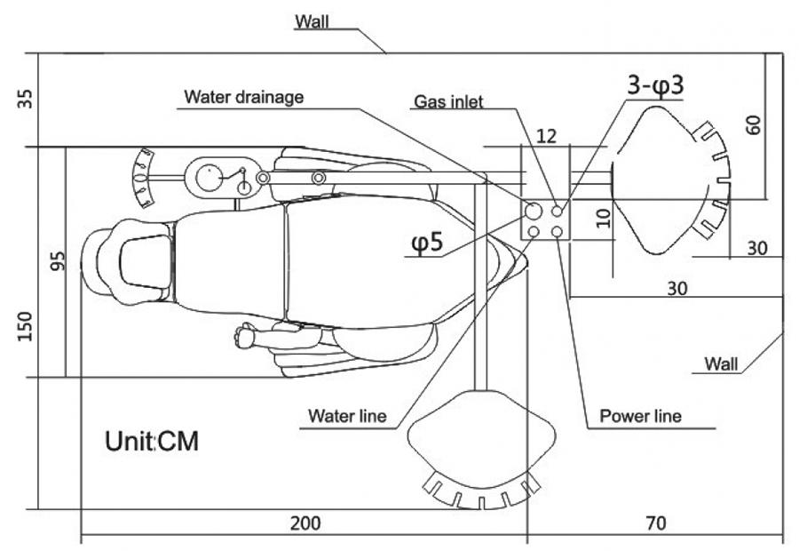 الكرسي مرتبط بوحدة أدوات من خلال ذراع ميكانيكية، والتي توفر المساحة لمرضى العيادة .