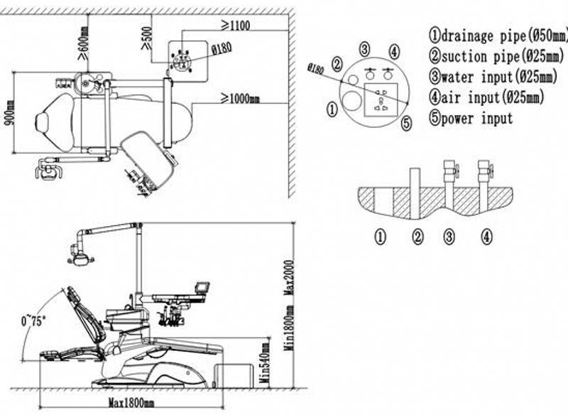 - يمكن لطبيب الأسنان تعديل ارتفاع الكرسي من خلال دواسة القدم .
