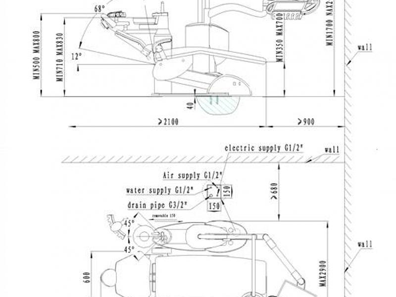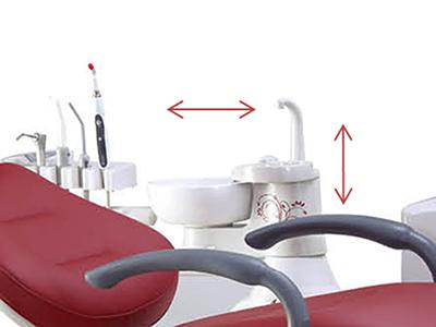 - يتميز الكرسي بتصميم مريح يضمن راحة المريض، حتى عند الاستلقاء عليه، المبصقة قابلة للتعديل في اي اتجاه، مما يسهل على المريض البصق بسهولة